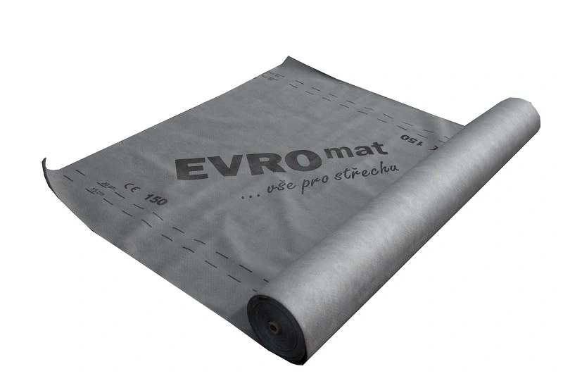 EVROmat 150 g je lehká a funkční difuzní fólie, určená pro použití jako kontaktní podstřešní fólie. Pokládá se přímo na krokve, tepelnou izolaci nebo bednění. Díky své paropropustnosti umožňuje konstrukci „dýchat“, a zároveň ji chrání před pronikáním vody, sněhu nebo prachu.