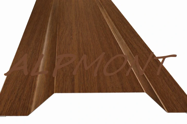 - Krycí lišta přítlačná kosá r.š.200mm pozink lakovaný Dřevodekor Ořech dl.2m