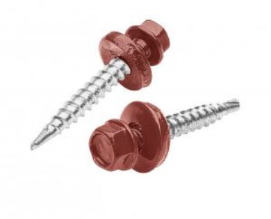 - Šroub farmářský samořezný 4,8x20mm Lakovaný RAL 3009 červená oxid s pogumovanou podložkou