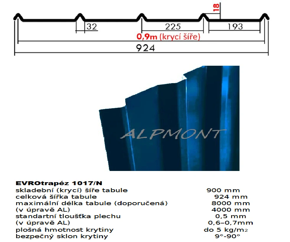 Trapézový plech 1017/N lakovaný pozink 0.5mm RAL 5010 enziánová modrá dl.3mbdo 7 dnů780,00 Kč/ ks644,63 Kč bez DPH