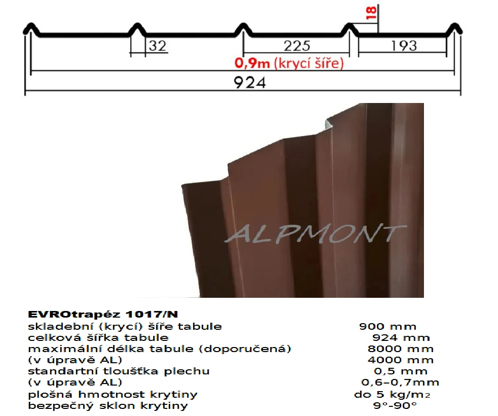 Trapézový plech 1017/N lakovaný pozink 0.5mm RAL 8017 hnědá čoko dl.5mbdo 7 dnů1 300,00 Kč/ ks1 074,38 Kč bez DPH