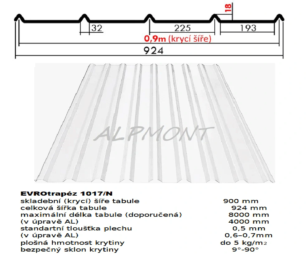 - Trapézový plech 1017/N lakovaný pozink 0.5mm RAL 9010 bílá dl.7mb