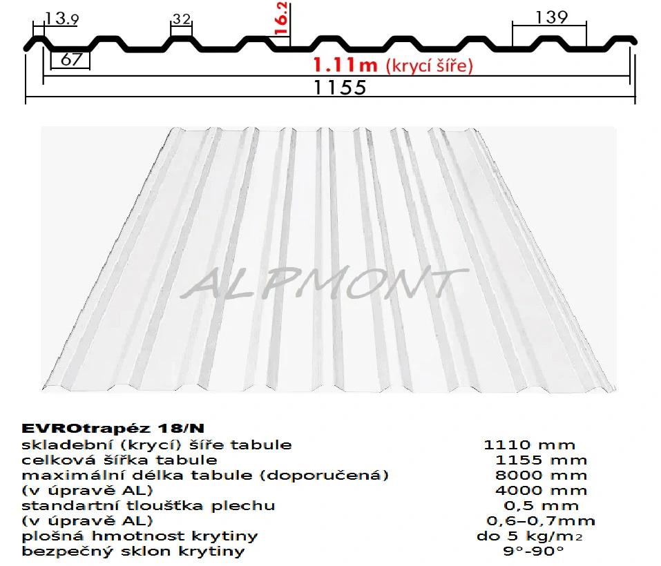 - Trapézový plech 18/N lakovaný pozink 0.5mm RAL 9010 bílá dl.6,5mb