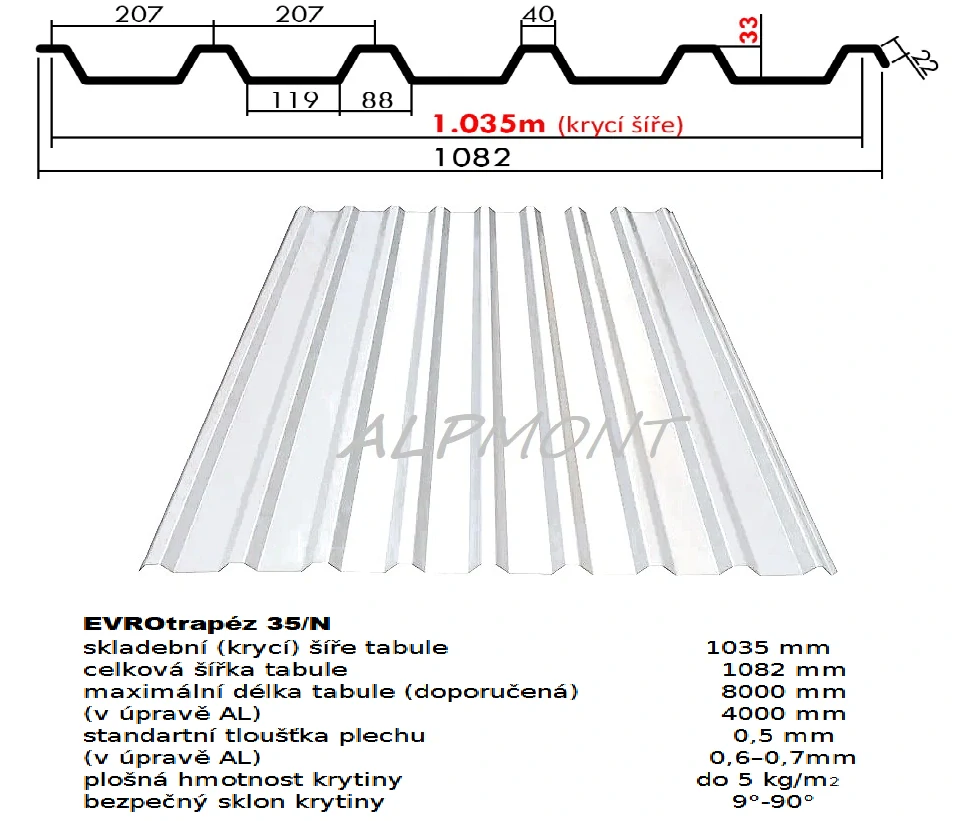- Trapézový plech 35/N lakovaný pozink 0.5mm RAL 9007 stříbrná tmavá dl.4,5mb