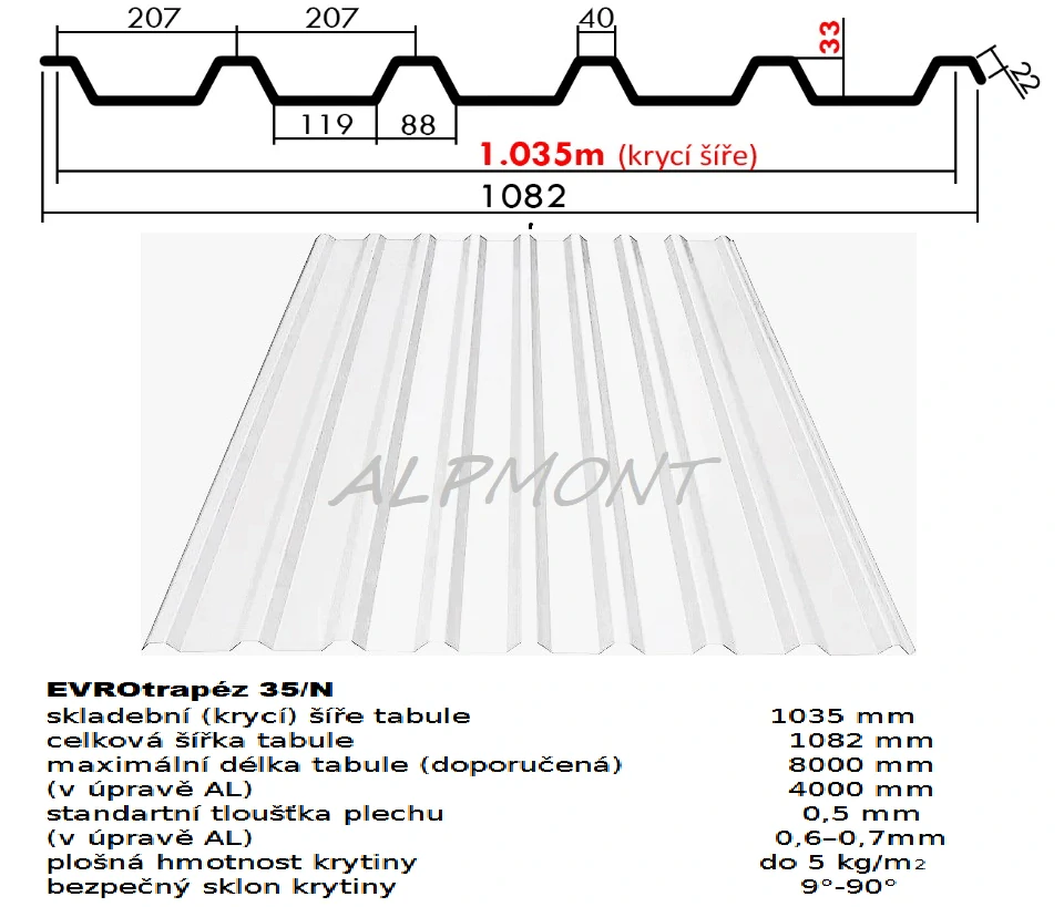 Trapézový plech 35/N lakovaný pozink 0.5mm RAL 9010 bílá dl.7,5mbdo 7 dnů2 355,00 Kč/ ks1 946,28 Kč bez DPH