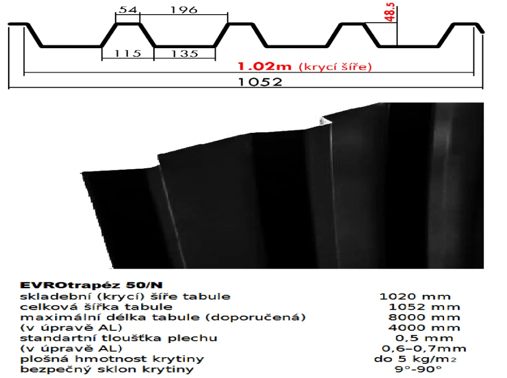 - Trapézový plech 50/N lakovaný pozink 0.5mm RAL 9005 černá dl.2mb