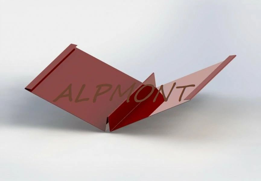 Úžlabí se stojatou drážkou r.š.1000mm Al Hliník lakovaný RAL 3009 červená oxid dl.2m