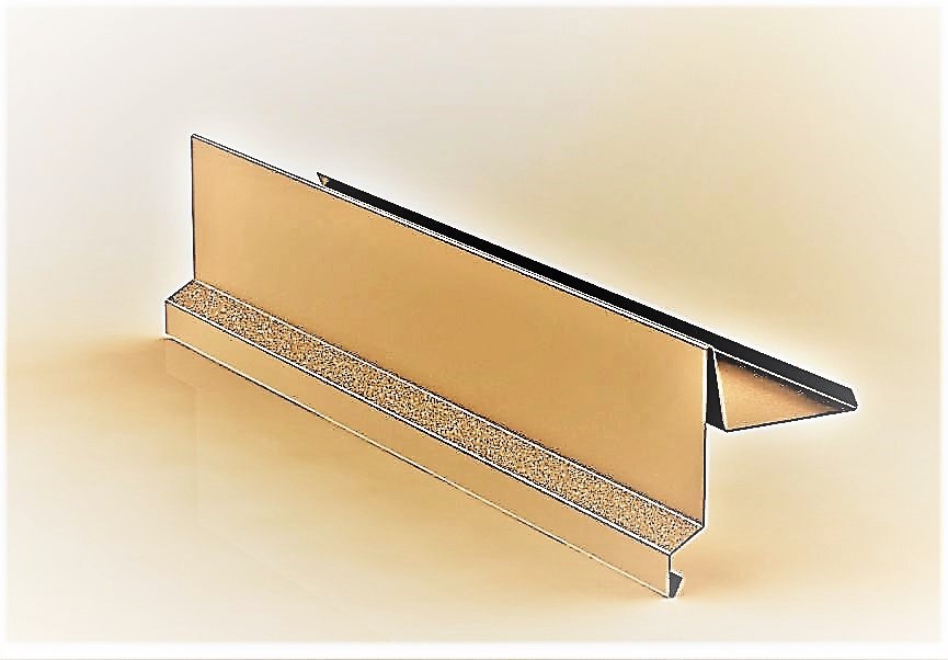 Závětrná lišta spodní, ukončuje střešní krytinu na štítových hranách. Spodní varianta je určena k montáži před krytinou , která je pak následně přeložena přes část lemování ležící na bednění nebo latění.