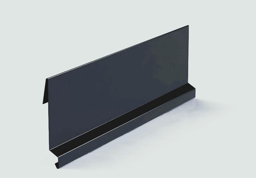 - Závětrná lišta závěsná r.š.200mm pozinkovaná Lakovaná RAL 7024 šedá grafit s folií dl.2m