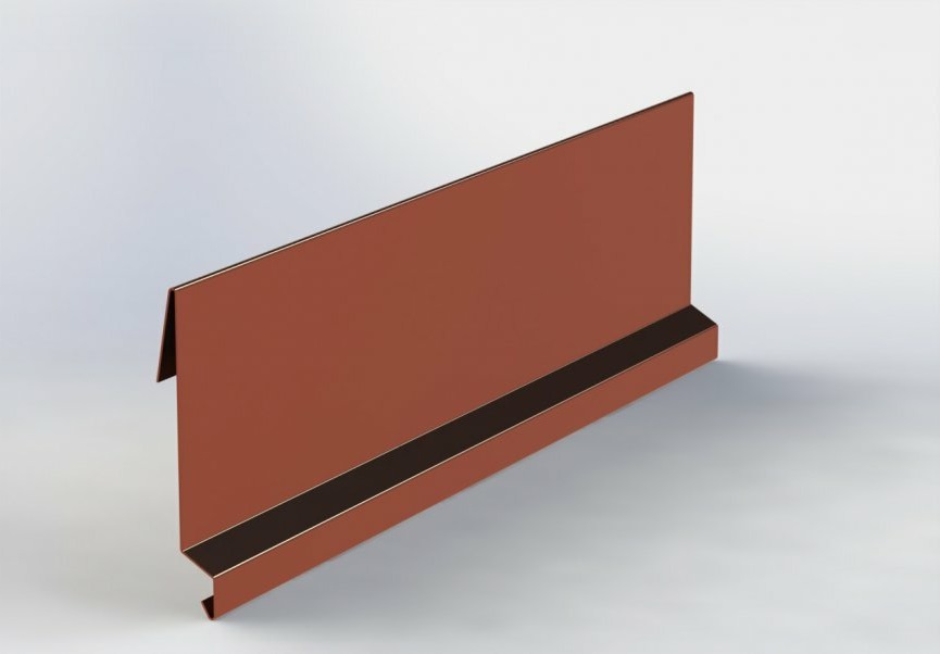 - Závětrná lišta závěsná r.š.200mm pozinkovaná Lakovaná RAL 8004 cihlová s folií dl.2m