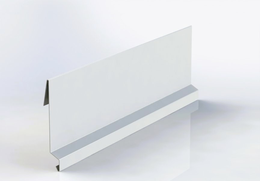- Závětrná lišta závěsná r.š.200mm pozinkovaná Lakovaná RAL 9002 šedobílá s folií dl.2m